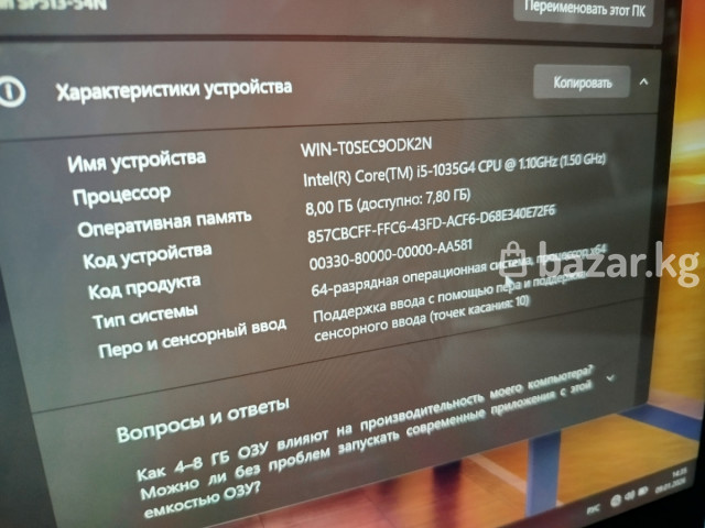 💻ACER SPIN5 X360 СЕНСОРНЫЙ — мощный универсальный ноутбук для работы, учебы и творчества. ⚙️Характеристики: - Процессор Intel Core i5‑1035G4: базовая частота 1.1-1.5 ГГц, Turbo Boost до 3.7 ГГц, 8 логических ядер/потоков - ОЗУ 8 ГБ - Хранилище: SSD 512 Gb высокоскоростной - Видеографика: Intel UHD Graphics (до 4 ГБ общей памяти) - Экран 14 - 2 к разрешение, сенсор, тонкие рамки, отличная цветопередача - Подсветка клавиатуры - Время работы батареи до 4–6 часов - Windows 11 установлен + программы для офиса и работы ⚙️Порты и коммуникации: - Wi‑Fi, Bluetooth - HDMI - USB 3.0 и USB 2.0 - USB‑C - LAN (RJ‑45) - Кардридер SD - Камера, встроенный микрофон, динамики - Аудиоразъем 3.5 мм 🧑‍💻Подходит для: - программирования, обучения, преподавания - офисных задач, 1С, бухгалтерии, маркетплейсов (Wildberries и др.) - работы с фото, Photoshop, таргетинга, графики и смежных направлений 🎁В комплекте на фото: зарядное устройство, мышь, сумка для ноутбука, коврик. 🎯Дополнительно - 3 месяца гарантии - Без обмена и рассрочки - Бесплатная доставка по всему Кыргызстану 😍Стильный и прочный корпус, работает очень быстро и с запасом мощности на годы.