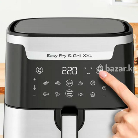 Аэрогриль Tefal Easy Fry & Grill XXL 2в1 EY801D15 - наслаждайтесь вкусом любимых блюд, приготовленных с заботой о здоровье. Общие характеристики Цвет товара серебристый/черный Мощность 1830 Вт Тип аэрогриль Тип управления электронное Тип нагревательного элемента ТЭН Объем колбы 6.5 л Количество автоматических программ 8 Максимальное время установки таймера 1 ч Регулировка температуры есть Особенности таймер В комплекте нижняя решётка, разделитель Длина сетевого шнура 0.8 м Дополнительная информация LCD дисплей Размеры и вес Высота 361 мм Ширина 303 мм Глубина 432 мм Вес 5.55 кг Дополнительно Внутреннее покрытие чаши Антипригарное Макс. температура нагрева, °С 220 Название серии easy fry & grill xxl Наличие дисплея Да Основной материал корпуса Металл, Пластик