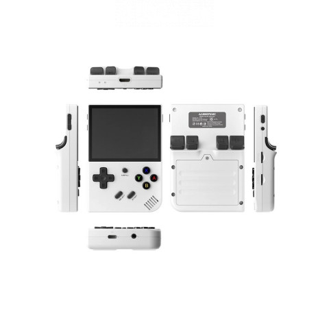 Color Transparent black/Gray/ White Screen 3.5-inch IPS full viewing angle, OCA full lamination/ 640*480 CPU H700 quad-core ARM Cortex-A53, 1.5GHz frequency GPU Dual- core G31 MP2 RAM LPDDR4 1GB Storage 32GB TF/MicroSD(Overseas warehouse 64GB TF/MicroSD) System Linux 64-bit WIFI/Bluetooth 2.4/5G WIFI 802.11a/b/g/n/ac,Bluetooth 4.2 Games Support 30+ kinds of simulator. Support users to download games in relevant formats Language Chinese, English, Japanese, Korean, Spanish Speaker High-fidelity speaker TF card Dual card slots, support TF card expansion, maximum 512GB; 32GB+128GB SD card (compatible total 8000+ games); Battery Li-polymer battery 3300mAh, lasting 8 hours Charging 5V/1.5A Other function Accessories USB charging cable, giftbox , user manual, screen protector Box specification Length 15.5cm;width 9.9cm;height 3.8cm;weight 0.309kg Console specification Length 11.7cm;width 8.1cm;height 2.2cm;weight 0.186 kg
