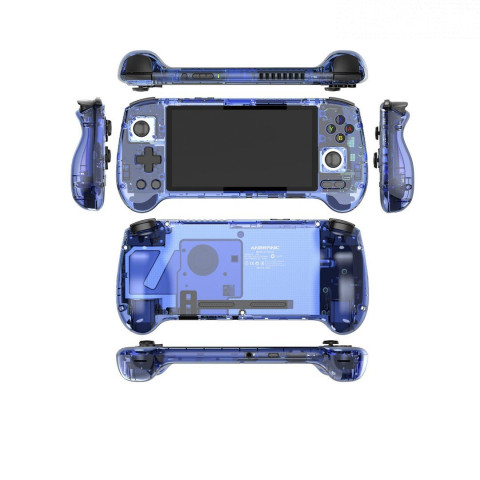 Color Black/Blue Translucent Screen 5.48-inch AMOLED screen, OCA full fit 1080*1920 CPU Unisoc T820 processor, 6nm EUV 5G SOC chip Octa-core 1*A76@2.7GHz+3*A76@2.3GHz+4*A55@2.1GHz GPU Quad Core Mali- G57 850MHz RAM 8GB LPDDR4X Storage 128G UFS2.2 System Android 13 WIFI/Bluetooth 2.4/5G WIFI 802.11a/b/g/n/ac,Bluetooth 5.0 Games Android games (Genshin Impact, Honor of Kings, etc.), and other 30+ emulators. Support users to download related format games Language Multi-language Speaker High fidelity dual speakers TF card Support TF card expansion, up to 2TB; Standard Version+128G (compatible 4423 games) ; Battery Polymer lithium battery 5500mAh, battery life 8 hours Charging Support 5V/2A charging, approximately 3.5 hours to fully charge. Other function Accessories USB charging cable, color box, manual, tempered glass screen protector Carton specification Length 51.5cm; Width 27cm; Height 25cm; Weight 12.218kg (20pcs) Box specification Length 24.8cm; Width 12.8cm; Height 4.5cm; Weight 0.584kg Console specification Length 22.3cm; Width 9cm; Height 1.5cm; Weight 0.331kg
