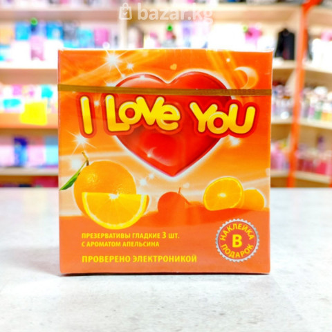 Презервативы «I Love You», 3 шт. Аромат апельсина. Презервативы I LOVE YOU при правильном использовании, обеспечивают надежную защиту от нежелательной беременности и заболеваний передающихся половым путем в том числе и ВИЧ. Гладкие презервативы нового поколения в силиконовой смазке с накопителем. Произведены из латекса, проверены электроникой.
