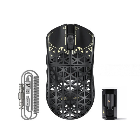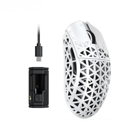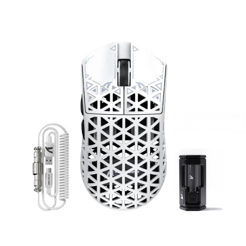 ATTACK SHARK R5 — суперлегкая мышь, в которой используется литой под давлением материал из углеродного волокна и полая конструкция, что уменьшает лишний вес и весит всего 39 г. Она обладает повышенной устойчивостью к давлению и износостойкостью, и может выдерживать определенный диапазон падений лучше, чем традиционные мыши. Это также обеспечивает прочность и удобство работы с мышью, которая создана для скорости и точности. Идеально подходит для всех FPS, MMO, RPG, MOBA, Battle Royale и других быстро развивающихся игр. Оснащена новейшим сенсором PixArt PAW3950 MAX, обеспечивающим первоклассную точность и аккуратность для быстрых, соревновательных игр, способным обеспечить 42 000 программируемых DPI, скорость 650 IPS, ускорение 50g. Ножки из тефлона с нулевыми добавками придают мыши наиболее стабильное скольжение, обеспечивая при этом лучшую тормозную способность. Беспроводная частота опроса 8 кГц с новейшей саморазвивающейся технологией WIRELESS для низкой задержки, низкого энергопотребления, более быстрой передачи данных и помехоустойчивости. Частота опроса 1 кГц в проводном режиме обеспечивает максимальную производительность без забот об энергосбережении. Более чуткие движения курсора и быстрый отклик на нажатие кнопки гарантируют непревзойденную производительность, обеспечивая ваш триумф, когда он действительно имеет значение! Stay Connected, Stay Unbeatable — Эта беспроводная мышь плавно переключается между Bluetooth, беспроводным 2,4 ГГц и проводным USB-подключением, которые можно легко переключить с помощью кнопки на задней панели мыши. Идеально подходит для систем Windows, macOS и т.д., ПК, ноутбуков, Mac, планшетных устройств или консолей, не пропуская ни одного удара. Кастомизированная программируемая мышь R5, рожденная для киберспорта. Оснащенная инновационной и интеллектуальной облачной веб-страницей, попрощайтесь с традиционным программным обеспечением для драйверов, не нужно загружать и устанавливать. Драйвер с открытым исходным кодом автоматически идентифицирует вашу компьютерную систему и позволяет настраивать DPI, скорость отдачи, соревновательный режим, настраиваемые кнопки, запись макросов, персонализированное отображение клавиш и другие дополнительные функции. Тип Игровая мышь Тип соединения беспроводная Интерфейс Bluetooth, USB Макс. разрешение датчика, dpi 42000 Количество кнопок 5 Тип датчика Оптический лазерный Форма для правшей Дополнительные клавиши Вперед/назад, Программируемые кнопки Конструкция мыши Классическая Бренд ATTACK SHARK Совместимые платформы PC Колесо прокрутки Да Модель сенсора Pixart PAW3395PRO Скорость сенсора, IPS 750 Макс. ускорение, G 50 Тип клавиш Кликающие Бесшумное нажатие Нет MTBF, кликов 30000000 Частота опроса USB порта, Гц 8000 Подсветка Нет Размеры, мм 119.5*61*36.3 Вес товара, г 39