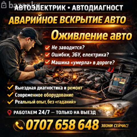 Автоэлектрик-диагност-моторист. • Специалист по оживлению авто. • Специалист по аварийному вскрытию авто. • Выездная компьютерная диагностика. Если машина не заводится, или закрылся, значит мы тот кто вам нужен. Звоните 24/7. -автоэлектрик. -диагност -моторист -реаниматор авто. -вскрытие • работем только на выезд. Бишкек-чуй. Заглохла машина и не заводится? Вызови скорую помощь автоэлектрика. Сделаем вашу машину не отрывая вас от работы, в конце полный видео отсчёт. С вас только ключи от машины и онлайн оплата или налом, в конце работы. Ключ отправим через такси или перегоним вашу машинку куда поростите в пределах города. (все для удобства наших клиентов )) звоните 24/7. • выездная компьютерная диагностика (все легковые и электромобили). 🖥️ • запустим любое авто. ⚡🚘 • ремонт стартеров и генератора. 🚀 • ремонт топливной системы ⛽ • замена ремней гур и грм 🌀 • ремонт или замена авто печек 🔥 • замена любых агрегатов или деталей двигателя. ⚙️ • моторист 16 лет опыта. • автоэлектрик 14 лет опыта. • установка зажигания (проблем с двигателем) • сделаем все быстро, качественно и с гарантией. 📶 • проведем полную диагностику с использованием спец оборудования с точным определением не исправности. 📟 • отключение блокировки зажигания с чип доступом (имобилайзер) 🔑 • прописка иммобилайзера к новому эбу (после замены компьютера авто) • запчасти привезём сами. ⚙️ звоните! ☎️ к вам приедет специалист с богатым опытом работы. Выезд по городу бишкек и чуйской области.