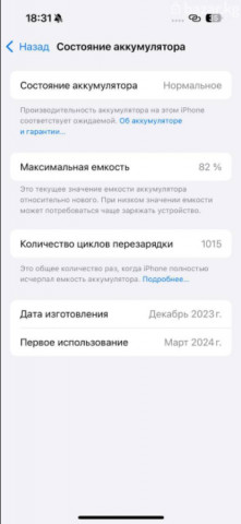 Айфон 15 про, титан, 128 гб, батарея 82%. есть коробка, не с подвала в цуме. брали в официальном магазине, коробка оригинальная. пользовалась девушка очень аккуратно. царапин и дефектов нет. телефон в идеальном состоянии. меняю так как приобрела другой. телефон полностью в рабочем состоянии, все работает без всяких дефектов, не вскрывался, не падал. в подарок дам чехол.