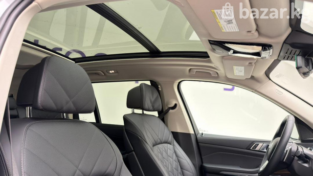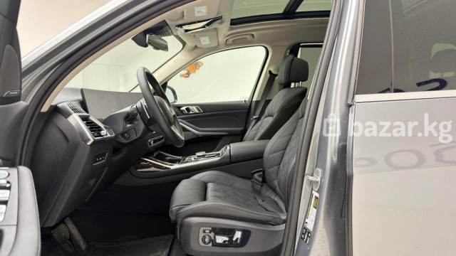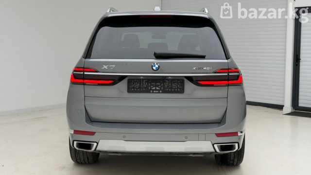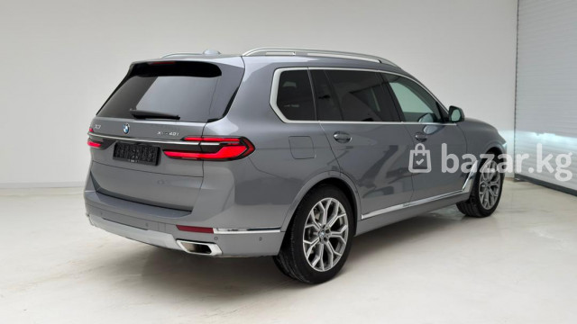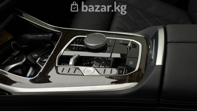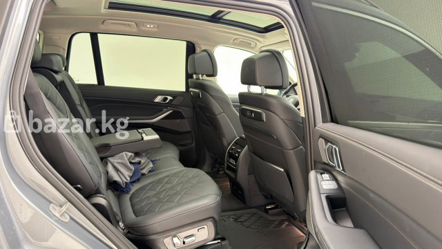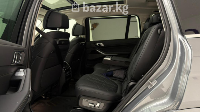 BMW X7 xDrive40i — полноразмерный премиальный SUV с полным приводом и 3‑рядным салоном. Ключевые особенности: - Версия xDrive40i с фирменной системой полного привода xDrive. - Просторный 7‑местный салон с раздельными сиденьями второго ряда и регулируемыми подголовниками. - Премиальная отделка: перфорированная кожаная обивка с ромбовидной прострочкой, декоративные вставки под дерево, контрастная прошивка. - Панорамная стеклянная крыша/люк над первым и вторым рядом, что добавляет света и ощущения пространства. - Современная центральная консоль: фирменный контроллер iDrive, селектор АКП, кнопка Start/Stop, режимы движения, авто Hold, электронный стояночный тормоз. - Светодиодные узкие задние фонари с 3D‑графикой, разделённая задняя дверь багажника для удобной погрузки, парковочные датчики. - Двухзонный/многозонный климат-контроль с дефлекторами для задних пассажиров, подогрев/электрорегулировки сидений спереди (кнопки на спинке пассажирского сиденья для задних пассажиров). - Многофункциональный руль, развитые системы помощи водителю и паркинга, камера/датчики в зоне зеркала. Идеален для дальних поездок и города: сочетает высокий уровень комфорта, технологии и практичность большого багажника с возможностью трансформации салона. Цвет кузова — серый металлик. Задние патрубки выпускной системы с хромированными накладками подчеркивают статусный внешний вид.