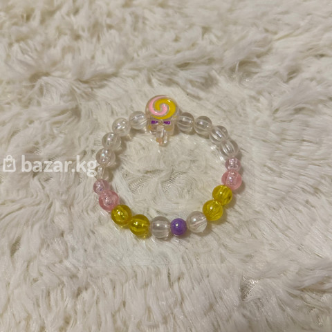 Набор милых браслетов из бусин - Дизайны: 4 варианта 1) Сиреневый браслет из прозрачных округлых бусин с центральной фигуркой котёнка/пикси в капюшоне и металлическим подвесом-звёздочкой. 2) Розовый браслет из мелкого бисера с пастельными вставками и крупной фигуркой зайчика в капюшоне с бантиком. 3) Браслет в оранжево‑зелёной гамме с крупной акриловой подвеской «морковка» и зелёными шариками. 4) Яркий браслет из прозрачных, жёлтых, розовых и фиолетовой бусин с маленькой фигуркой леденца наверху. - Материалы: акриловые/пластиковые бусины, бисер, эластичная нить; один вариант дополнен металлической подвеской. - Посадка: на резинке — удобно надевать и снимать, подходят на тонкое запястье/детскую руку. - Стиль: кавайные, пастельные, для повседневных образов, фотосессий и в подарок любителям милых аксессуаров. - Уход: беречь от воды и сильных перегибов, хранить отдельно, протирать сухой мягкой салфеткой.
