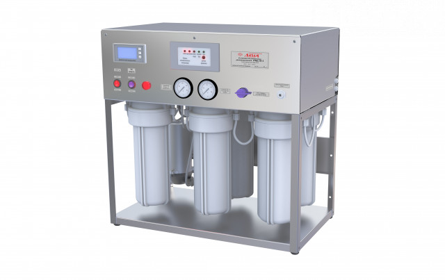 Производительность 30 л/ч Электрическая мощность не более 0,03 кВт Напряжение 220 В Электропроводность производимой воды, мкСм/см не более 1 Температура исходной воды, °C от 5 до 35 Автоматическая работа со сборником очищенной воды - Есть Установка получения деионизированной воды УПВД-30-3-УФ является развитием установки УПВД-30-2, в отличие от которой в конструкции появились следующие элементы: Ступень ультрафиолетового облучения УФ-лампой для обеззараживания получаемой воды Фильтр мембранной фильтрации для удаления частиц и микроорганизмов из воды Кондуктометр с датчиком для контроля качества получаемой воды Контроллер для управления работой повышающего насоса и фильтров, включая промывку фильтров по заданной программе Клапан для проведения автоматической промывки Клапан для отключения подачи исходной воды при работе со сборником воды В деионизаторе УПВД 30-3-УФ кроме обратноосмотических мембран и и ионизирующей смолы используется модуль УФ обеззараживания, а также финишный мембранный микрофильтр с порогом отсечения 0,22 мкм. На передней панели установлены органы управления: кондуктометр, позволяющий контролировать качество получаемой воды, контроллер отвечающий за автоматическую промывку обратноосмотических мембран, а также манометры контроля давления воды. Деионизатор УПВД 30-3-УФ позволяет получить воду для лабораторного анализа 2 типа с электропроводностью не более 1,0 мкСм/см. Отлично подходит для предприятий, научных центров и лабораторий, где требуется постоянный контроль качества получаемой воды.