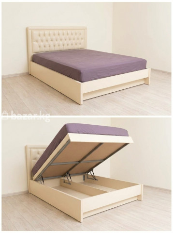 Двуспальная кровать 160×200 с подъёмным механизмом и большим коробом для хранения Описание: - Спальное место 160×200 см - Подъёмный механизм на газ‑амортизаторах: открывается легко одной рукой и надёжно фиксируется в верхнем положении. - Вместительный бельевой короб, разделён на 2 отсека — удобно для постельного, сезонной одежды и пледов. - Прочный металлокаркас основания — кровать устойчиво стоит, не скрипит. - Мягкое высокое изголовье с декоративной стяжкой — комфортно сидеть, читать; выглядит стильно. - Обивка светло‑бежевого (молочного) цвета, практичный материал, легко протирать. - Универсальный дизайн — подойдёт к современному, сканди и классическому интерьеру. Состояние аккуратное б/у: механизм работает плавно, газ‑лифты держат; фурнитура целая. Комплектация - Каркас кровати + подъёмный механизм + основание. - Матрас на фото — для демонстрации, не входит (возможен отдельно, если нужно — обсудим).