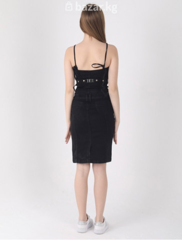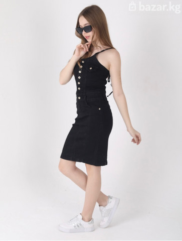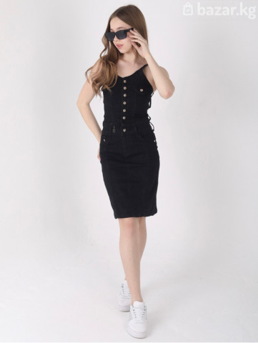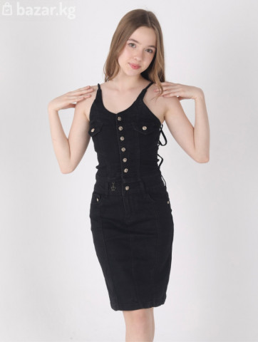 Черное джинсовое платье-комбинация - Материал: плотный деним (джинса) с эластаном для комфортной посадки. - Крой: прилегающий силуэт до колена, узкая юбка-карандаш. - Верх: корсетная посадка на тонких бретелях. - Застежка: ряд декоративных металлических пуговиц спереди. - Детали: имитация нагрудных карманов с клапанами и пуговицами; контрастная строчка по рельефам; шлевки под ремень на талии. - Спинка: декоративная шнуровка/ремешок по линии талии, обеспечивает дополнительную регулировку. - Карманы: боковые прорезные. - Цвет фурнитуры: металл под золото. - Стиль: casual/смарт-кэжуал; подходит для города, вечеров и неформальных событий. - Сочетается с: кедами, босоножками, жакетом или кожаной курткой. Цена до скидки 2500 сом, цена со скидкой 2000 сом По наличию размеров уточнять по WhatsApp: +996 506 503 508