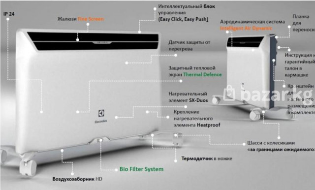 Технологии обогрева Максимально быстрый и бесшумный обогрев помещений достигается за счет мощного нагревательного элемента SX-DOUS. Благодаря новой конструкции корпуса трапециевидной формы его длина увеличена на 10%. Такое решение, в свою очередь, позволило увеличить площадь теплоотдачи. Нагревательный элемент нового поколения имеет монолитную структуру. Он отливается из специального алюминиевого сплава и обрабатывается посредством технологии Speed Boost, приобретая «ракушечную» поверхность, которая обеспечивает максимальную площадь соприкосновения с нагреваемым воздухом. Надежность Ресурс работы нагревательного элемента SX-DUOS составляет не менее 25 лет, что является практически беспрецедентным показателем для рынка бытового теплового оборудования. Бесперебойную работу прибору гарантирует также встроенная система термозащиты, которая исключает возможность перегрева, отключая конвектор при достижении максимально допустимой рабочей температуры. Высокая надежность работы приборов серии Air Gate 2 достигнута не только за счет применения передовых технологий, но и благодаря использованию высококачественных комплектующих, прошедших 100% многоступенчатый контроль на всех этапах производства в лабораторных и заводских условиях. Экономичность Высокая экономичность конвекторов серии Air Gate 2 обеспечивается применением монолитного нагревательного элемента SX-DUOS и наличием высокоточных термостатов. КПД (коэффициент полезного действия) конвекторов серии Air Gate 2 один из самых высоких на рынке электрических обогревателей - он составляет более 97%. Значительная экономия электроэнергии также достигается благодаря использованию современных термостатов HFT E/M, которые поддерживают заданную пользователем температуру в помещении с точностью до 0,1°C, помогая избегать ее сильных перепадов. Гарантированная безопасность Конвекторы серии Air Gate 2 соответствуют международным и российским стандартам, что подтверждено протоколами испытаний. Класс защиты прибора IP24 означает, что мелкие предметы и брызги воды не попадут внутрь корпуса, а прибор можно устанавливать в помещениях с повышенным уровнем влажности. Новые технологии делают приборы абсолютно безопасными даже для самых маленьких пользователей. Улучшенная технология конвективного потока нагретого воздуха позволила снизить температуру корпуса: на лицевой поверхности она составляет всего 50°С. Комплексная очистка воздуха Одна из главных особенностей конвекторов серии Air Gate – это запатентованная система очистки воздуха, которая в новом поколении приборов была усовершенствована. Модели серии Air Gate 2 снабжены улучшенной системой фильтрации Air Gate BIO. Основной фильтр нового типа, помимо предварительной очистки от пыли, полностью нейтрализует бактерии, снижая их активность и оказывая антисептическое действие. Угольный фильтр поглощает неприятные запахи, в том числе запах табачного дыма. Катехиновый фильтр, созданный на основе натуральных растительных компонентов, обезвреживает вирусы и бактерии. И наконец, фильтр с биологически активным витамином С способствует укреплению иммунитета. Технические характеристики Тип конвектор Регулировка мощности есть Уровни мощности 2000/1000 Вт Площадь обогрева 25 кв.м Напряжение 220/230 В Функциональность Управление механическое Таймер нет Варианты 