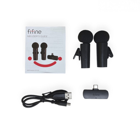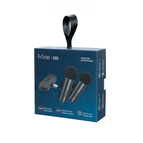 Fifine M8 Dual это комплект универсальных петличных беспроводных микрофонов, который совместим с любыми смартфонами через порт USB Type-C. Микрофоны демонстрируют автономную работу до 6 часов без перерыва, что делает их идеальным выбором для трансляций, видеоконференций или аудиозаписи. Микрофон Fifine M8 Dual способен передавать качественный звук на расстояние до 20 метров без барьеров. Он эффективно повышает разборчивость, детализацию и глубину голоса, одновременно минимизируя фоновый шум. Благодаря кнопке отключения звука, микрофон можно мгновенно и бесшумно выключить, что особенно полезно во время трансляций или видеоконференций. Встроенный светодиодный индикатор помогает контролировать состояние микрофона. Красный цвет индикатора указывает на то, что микрофон выключен, синий что микрофон работает. Если индикатор светится зелёным, это означает, что устройство подключено к питанию и заряжено. Особенности: Малые размеры и вес Высокое качество записи Универсальное подключение Сквозной порт USB-C Два микрофона в комплекте Характеристики: Конструкция: петличный (клипса) Тип подключения: беспроводное (2.4 ГГц) Назначение: универсальный Диаграмма направленности: всенаправленный Разъем: USB-C Частотный диапазон: 50 — 15000 Гц Питание: от аккумулятора (микрофон), USB-C (трансмиттер) Время работы от аккумулятора: до 6 часов