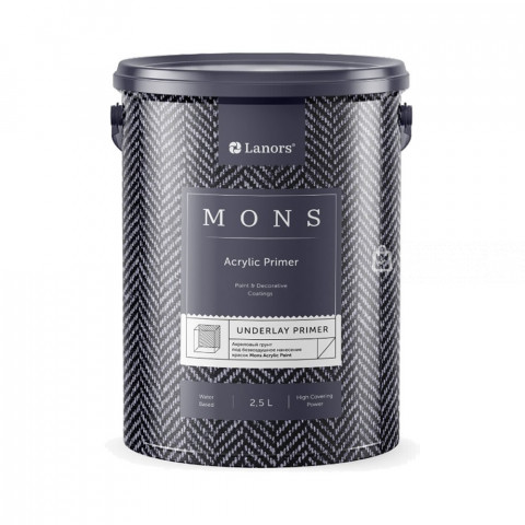 Латексный грунт под безвоздушное нанесение красок на акриловой основе. Используется в качестве подложки перед нанесением основной краски. Выравнивает впитываемость поверхности, обеспыливает, создает прекрасную адгезию. Основание: Материал подходит для нанесения на: гипсокартон, оштукатуренные и зашпаклеванные поверхности, а также бетон, МДФ, ДСП. Подготовка поверхности: Все поверхности должны быть сухими и очищенными от пыли, масляных пятен, старой краски и т.д. Нанесение: Перед нанесением латексный грунт Моns необходимо тщательно перемешать. Наносится с помощью краскопульта. При необходимости можно наносить валиком или кистью. Колеровка: Не требует колеровки. Объем, л: - 2,5 л - 4,5 л