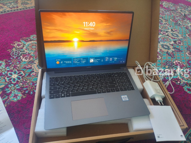 Ноутбук Huawei (серия MateBook, 15") + комплект аксессуаров - Экран около 15–15.6": тонкие рамки, матрица с естественной цветопередачей, комфортно для работы и учебы. - Корпус серого цвета, металлический вид, логотип HUAWEI на крышке. - Клавиатура островного типа с полноценным блоком стрелок, большой тачпад. - Наклейка NFC/OneHop на корпусе — поддержка быстрого сопряжения со смартфонами Huawei. - Веб-камера, микрофоны и стереодинамики для видеосвязи. - ОС Windows (на экране — стандартный экран блокировки/виджеты погоды). - Порты: виден разъем питания USB‑C (зарядка через комплектный блок), также присутствуют классические порты по бокам (USB и др. — см. фото). - Адаптер питания USB‑C и кабель в комплекте. - Документация в коробке. Дополнительно включены: - Рюкзак для ноутбука серого цвета с внешним карманом на молнии. - Сумка-портфель для ноутбука темно-серого цвета с плечевым ремнем и ручками. Отличный вариант для работы, учебы, мультимедиа и поездок: тонкий, легкий, с удобной клавиатурой и большим экраном. Комплект поставляется в фирменной коробке с зарядным устройством и двумя сумками для переноски.