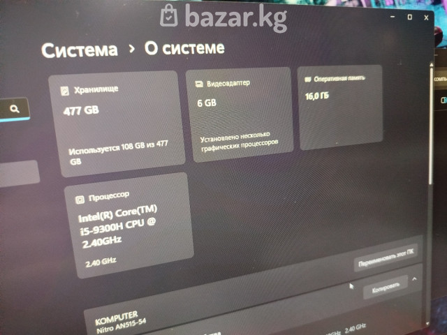💻Acer Nitro 5 (привозной из США) — мощный игровой ноутбук для любых сложных универсальных задач - игр, графики, монтажа, дизайна, 3D, фото/видео обработки, программирования итд 🔥Состояние б/у идеальное ⚙️Характеристики: - Процессор: Intel Core i5‑9300H 2.4–4.1 ГГц, 8 логических ядер/потоков - Видеокарта: NVIDIA GeForce GTX 1660Ti 6 ГБ + Intel UHD Graphics - ОЗУ: 16 ГБ - Накопитель: SSD NVMe 512 ГБ - Дисплей: 15.6" IPS, Full HD 1920×1080 - Клавиатура: с подсветкой - Автономность: в режиме веб‑серфинга 3–4 часа и выше - ОС: установлен Windows 11 + программы для офиса и работы ⚙️Порты и беспроводные модули: - Wi‑Fi, Bluetooth, LAN - HDMI, 3×USB, USB Type‑C, аудиоразъём - Веб‑камера, встроенный микрофон, динамики 🎁Комплектация и допы: - Зарядное устройство - Подарок: сумка + мышь + коврик - Бесплатная доставка по городу и всему Кыргызстану - Гарантия 3 месяца - Обмена и рассрочки нет #ноутбукибишкек #компьютерыбишкек #ноутбук #электроникабишкек #bishkek