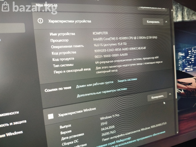 💻Acer Nitro 5 (привозной из США) — мощный игровой/рабочий ноутбук для игр, графики, монтажа, дизайна, 3D, фото/видео обработки и программирования. 🔥Состояние б/у идеальное ⚙️Характеристики: - Процессор: Intel Core i5‑10300H 2.5–4.5 ГГц, 8 логических потоков - Видеокарта: NVIDIA GeForce GTX 1650 4 ГБ + Intel UHD Graphics - ОЗУ: 16 ГБ - Накопитель: SSD NVMe 512 ГБ - Дисплей: 15.6" IPS, Full HD 1920×1080, 144 Гц - Клавиатура: RGB‑подсветка с настройкой цвета - Автономность: в режиме веб‑серфинга 3–4 часа и выше - ОС: установлен Windows 11 + программы для офиса и работы ⚙️Порты и беспроводные модули: - Wi‑Fi, Bluetooth, LAN - HDMI, 3×USB, USB Type‑C, аудиоразъём - Веб‑камера, встроенный микрофон, динамики 🎁Комплектация и допы: - Зарядное устройство - Подарок: сумка + мышь + коврик - Бесплатная доставка по городу и всему Кыргызстану - Гарантия 3 месяца - Обмена и рассрочки нет #ноутбукибишкек #компьютерыбишкек #ноутбук #электроникабишкек #bishkek