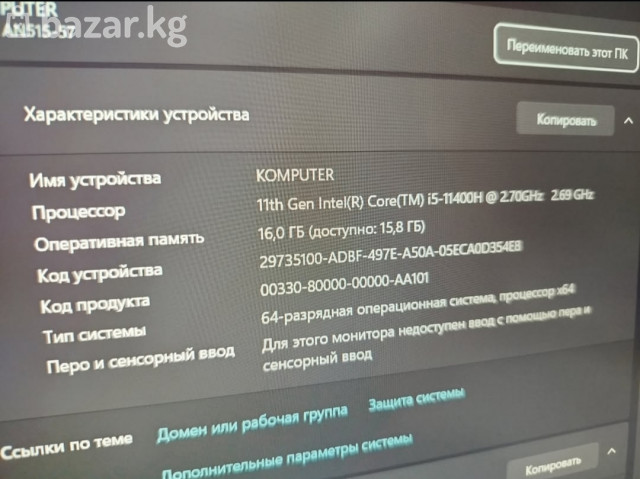 ACER NITRO 5 Привозной из США🇺🇸 Мощный Игровой производительный ноутбук для игр/графических работ/дизайна/монтажа/фото видео обработки/3D/программирования и других сложных универсальных задач 🔹Процессор:Intel Core i5-11400H 2.7 Ghz до 4.5 ghz boost 12 логических ядер/потоков 🔹Видеокарта RTX3050+Intel(R) Xe Graphics 🔹Озу 16 Gb 🔹Память для хранения 512 Gb SSD 🔹Экран 15.6 FHD IPS (1920x1080) 144 гц 🔹Состояние б/у отличное, полностью готов к работе 🔋Батарея в режиме интернет серфинга 3-4 часа и выше 🔦Подсветка клавиатуры RGB с регулировкой в любой цвет, а также другие широкие возможности настроек этой модели. 🔸Установлен свежий Windows 11+программы для офиса и работы 🔸Есть все необходимые разьемы: камера, встроенный микрофон. Wi-fi, bluetooth, usb 3х, hdmi. Встроенные динамики, Lan, Type-s, разъём для наушников 🚗Бесплатная доставка по городу и всему Кыргызстану 🎁В подарок сумка+мышка+коврик 🔌Зарядка в комплекте 📋Гарантия 3 месяца ❌Обмена и рассрочки нет