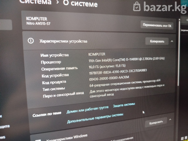 ACER NITRO 5 Привозной из США🇺🇸 Мощный Игровой производительный ноутбук для игр/графических работ/дизайна/монтажа/фото видео обработки/3D/архитектура/программирования и других сложных универсальных задач. 🔹Процессор:Intel Core i5-11400H 2.7 Ghz до 4.5 ghz boost 12 логических ядер/потоков 🔹Видеокарта RTX3050 🔹Озу 16 Gb 🔹Память для хранения 512 Gb SSD 🔹Экран 15.6 FHD IPS (1920x1080) 144 гц 🔹Состояние б/у идеальное, полностью готов к работе 🔋Батарея идеальная 🔦Подсветка клавиатуры RGB с регулировкой в любой цвет, а также другие широкие возможности настроек этой модели. 🔸Установлен свежий Windows 11+программы для офиса и работы 🔸Есть все необходимые разьемы: камера, встроенный микрофон. Wi-fi, bluetooth, usb 3х, hdmi. Встроенные динамики, Lan, Type-s, разъём для наушников 🚗Бесплатная доставка по городу и всему Кыргызстану 🎁В подарок сумка+мышка+коврик 🔌Зарядка в комплекте 📋Гарантия 3 месяца ❌Обмена и рассрочки нет Незабудьте подписатся на нас ↙️ ✨ @nout_bish.kg ✨ #ноутбукибишкек #компьютерыбишкек #ноутбук #электроникабишкек #bishkek