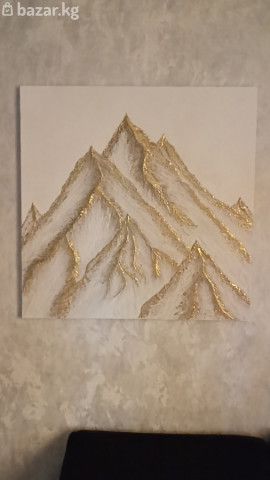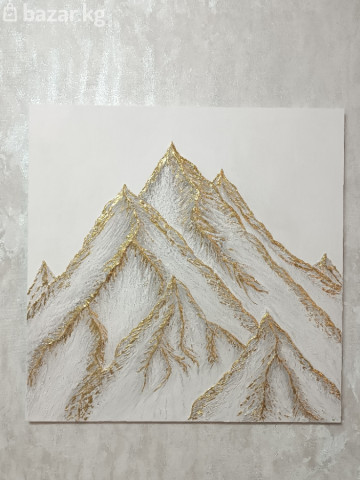 Интерьерная картина "Золотые вершины" Ручная работа Размер 75×75см. Материалы: артборд, текстурная паста, поталь, акрил. В наличии.