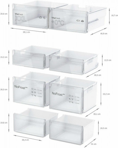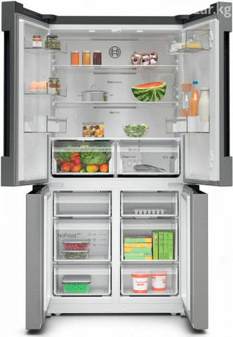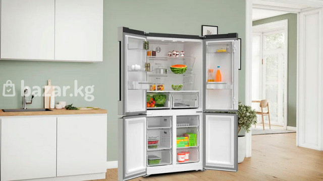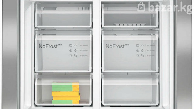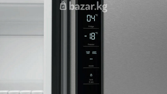 Ключевые преимущества: Элегантный дизайн и функциональность Высокая энергоэффективность и тишина работы Продуманная система охлаждения и размораживания ОБЩИЕ ХАРАКТЕРИСТИКИ Тип отдельностоящий Вид Side-by-Side Расположение морозильной камеры снизу Количество камер 2 Функция «Отпуск» есть ВМЕСТИМОСТЬ Общий полезный объем, л 605 Полезный объем холодильной камеры, л 405 Полезный объем морозильной камеры, л 200 ДИЗАЙН Серия Serie | 4 Цвет нержавеющая сталь Обработка против отпечатков пальцев есть УПРАВЛЕНИЕ Тип управления электронное Элементы управления сенсорные Дисплей есть ХОЛОДИЛЬНАЯ КАМЕРА Система охлаждения х.к. No Frost Система размораживания х.к. автоматическая Система MultiAirflow есть Функция суперохлаждения есть ОБОРУДОВАНИЕ ХОЛОДИЛЬНОЙ КАМЕРЫ Общее количество полок в холодильной камере 3 Количество регулируемых полок в холодильной камере 2 Количество фиксированных полок в холодильной камере 1 Полки из высокопрочного стекла есть Количество полок на дверце 5 Количество подставок для яиц 3 Внутреннее освещение холодильной камеры светодиодное ЗОНА СВЕЖЕСТИ Зона свежести есть Тип зоны свежести VitaFresh plus МОРОЗИЛЬНАЯ КАМЕРА Мощность морозильной камеры **** Система размораживания м.к. автоматическая Система охлаждения м.к. NoFrost Мощность замораживания, кг/ 24 ч 13 Автономное сохранение холода, ч 15 Функция суперзамораживание SuperFreezing есть ОБОРУДОВАНИЕ МОРОЗИЛЬНОЙ КАМЕРЫ Количество ящиков в морозильной камере 6 Большой ящик BigBox есть Количество ванночек для льда 1 ТЕХНИЧЕСКИЕ ХАРАКТЕРИСТИКИ Класс энергопотребления E (старое обозначение A++) Количество компрессоров 1 Тип компрессора инверторный Количество контуров охлаждения 1 Годовой расход эл.энергии, кВтч 333 Напряжение, В 220-240 Частота тока, Гц 50-60 Предохранители, А 10 Уровень шума, дб 38 БЕЗОПАСНОСТЬ Индикация открытой двери световая и звуковая Сигнализация об ошибке звуковая ГАБАРИТЫ, ВЕС Высота, см 183 Ширина, см 90.5 Глубина, см 73.1 Вес нетто, кг 118.3 КОНСТРУКЦИЯ Ручка двери встроенная вертикальная Дверной упор Side-by-Side ДОПОЛНИТЕЛЬНЫЕ ХАРАКТЕРИСТИКИ Длина сетевого кабеля, м 2.4 Вес в упаковке, кг 125
