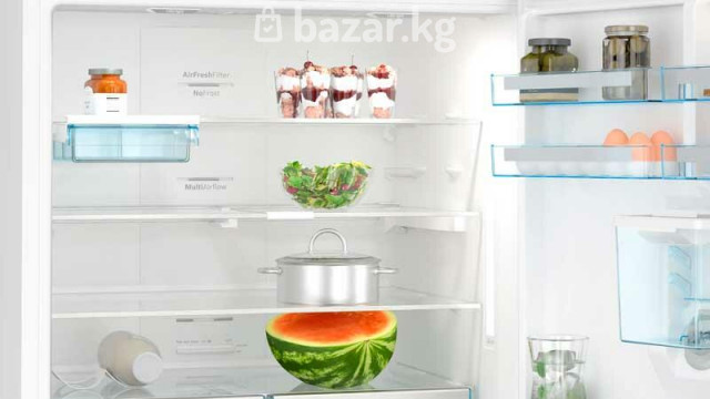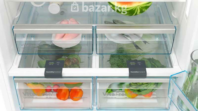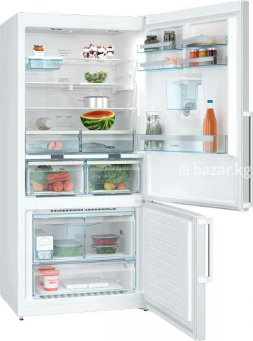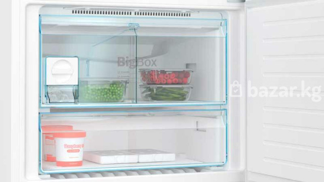 Ключевые преимущества: Большой полезный объем и функциональность Система охлаждения No Frost и функция суперохлаждения Экономичность и эффективность в использовании ОБЩИЕ ХАРАКТЕРИСТИКИ Тип отдельностоящий Вид холодильник с морозильником Расположение морозильной камеры снизу Количество камер 2 Функция «Отпуск» есть ВМЕСТИМОСТЬ Общий полезный объем, л 682 Полезный объем холодильной камеры, л 496 Полезный объем морозильной камеры, л 186 ДИЗАЙН Серия Serie | 6 Цвет белый Обработка против отпечатков пальцев есть УПРАВЛЕНИЕ Тип управления электронное Элементы управления сенсорные Дисплей есть ХОЛОДИЛЬНАЯ КАМЕРА Система охлаждения х.к. No Frost Система размораживания х.к. автоматическая Система MultiAirflow есть Функция суперохлаждения есть ОБОРУДОВАНИЕ ХОЛОДИЛЬНОЙ КАМЕРЫ Общее количество полок в холодильной камере 3 Количество регулируемых полок в холодильной камере 2 Количество фиксированных полок в холодильной камере 1 Полки из высокопрочного стекла есть Выдвижные полки EasyAccess есть Полка для бутылок есть Количество полок на дверце 5 Количество подставок для яиц 3 Внутреннее освещение холодильной камеры светодиодное ЗОНА СВЕЖЕСТИ Зона свежести есть Тип зоны свежести VitaFresh plus МОРОЗИЛЬНАЯ КАМЕРА Мощность морозильной камеры **** Система размораживания м.к. автоматическая Система охлаждения м.к. NoFrost Мощность замораживания, кг/ 24 ч 20 Автономное сохранение холода, ч 30 Функция суперзамораживание SuperFreezing есть Аккумуляторы холода 2 Ледогенератор есть ОБОРУДОВАНИЕ МОРОЗИЛЬНОЙ КАМЕРЫ Количество ящиков в морозильной камере 2 Большой ящик BigBox есть Легкое изменение положения полок VarioZone есть ТЕХНИЧЕСКИЕ ХАРАКТЕРИСТИКИ Класс энергопотребления E (старое обозначение A++) Количество компрессоров 1 Тип компрессора стандартный Количество контуров охлаждения 2 Годовой расход эл.энергии, кВтч 378 Мощность подключения, Вт 100 Напряжение, В 220-240 Частота тока, Гц 50-60 Предохранители, А 10 Уровень шума, дб 40 БЕЗОПАСНОСТЬ Индикация открытой двери звуковая Сигнализация об ошибке световая и звуковая Защита от детей есть ГАБАРИТЫ, ВЕС Высота, см 186 Ширина, см 86 Глубина, см 81 Вес нетто, кг 112.7 КОНСТРУКЦИЯ Ручка двери вертикальная накладная Дверной упор справа Возможность перенавешивания двери есть ДОПОЛНИТЕЛЬНЫЕ ХАРАКТЕРИСТИКИ Длина сетевого кабеля, м 2.4 Возможность установки вплотную к стене есть