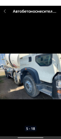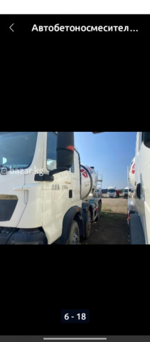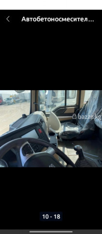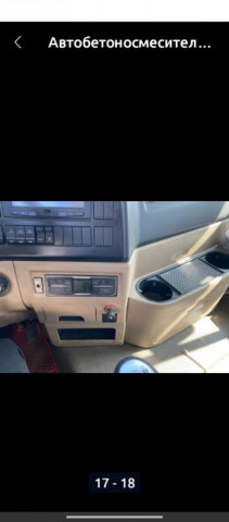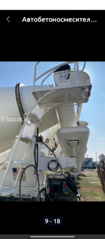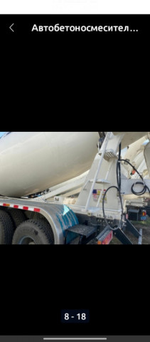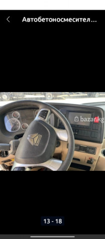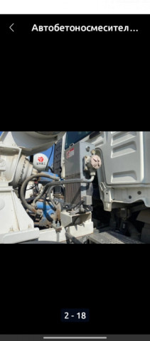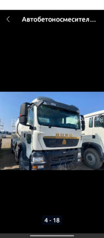 Бетоновоз (автобетоносмеситель) HOWO Описание: - Шасси HOWO (SINOTRUK), кабина с высокой крышей, аэродинамический козырек. - Полная масса по маркировке: 31 000 кг. - Смесительный барабан цилиндрического типа с загрузочной и выгрузочной воронками, боковая лестница и площадка обслуживания. - Гидравлическая система привода барабана: насос и гидромотор, масляный радиатор охлаждения, шланговые соединения высокого давления. - Привод барабана через редуктор, доступ к узлам для обслуживания. - Топливный бак из металла, размещен на раме. - Двухосная задняя тележка, шоссейные шины, задние крылья. - Зеркала с дополнительными секциями для расширенного обзора, передние ПТФ, габаритные огни. - Фирменные обозначения HOWO/SINOTRUK и маркировка на барабане.