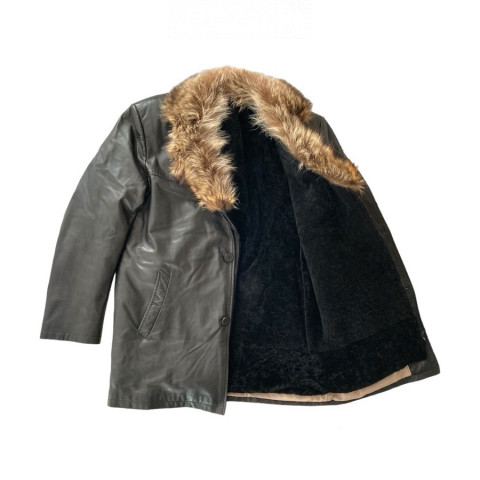 Классическая мужская куртка из кожи высокого качества с воротником из меха енота, с отстегивающимся подкладом из плотного слоя шерсти в хорошем состоянии 48 разм. Турция.