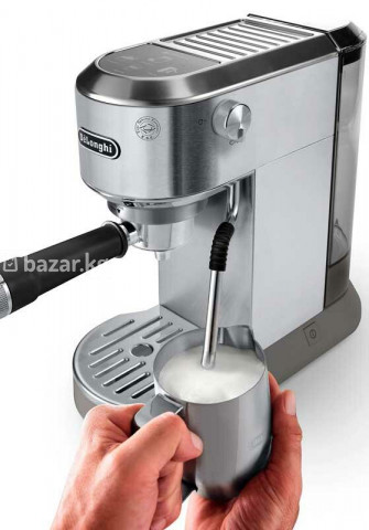 Благодаря своему оригинальному дизайну, Dedica является идеальным решением для приготовления холодного кофе и эспрессо в домашних условиях. Простая в использовании и интуитивно понятная, она станет идеальным выбором для любителей кофе. Обновленный интерфейс стал больше, расположен вверху и дополнен цветными сенсорными значками для большей наглядности. Современный, привлекательный внешний вид значительно отличает эту модель от предыдущих. Основные характеристики Коллекция Dedica Duo Модель EC890.M Мощность, Вт 1450 Система нагрева Термоблок Давление, бар 15 Объем резервуара для воды 1,1 Тип капучинатора ручной Предустановленные напитки Эспрессо, колд брю, кофейные напитки на основе молока Уникальные особенности Технология My Latte Art позволяет создавать идеальную шелковистую текстуру молочной пены, технология Cold Extraction Technology создана для приготовления холодных кофейных напитков Возможность готовить две чашки эспрессо Да Технические характеристики Цвет Металлик Материал корпуса Металл Съемный поддон для капель Да Габариты (ВхШхГ) 305x149x330 Вес нетто, кг 4,2 Тип дисплея Сенсорный Индикация очистки от накипи Да
