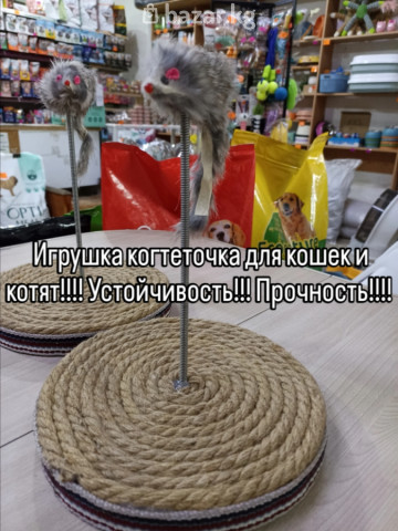 Круглая когтеточка для кошек и котят. Устойчивая. Прочная и устойчивая пружина с натуральной мышкой из кролика.