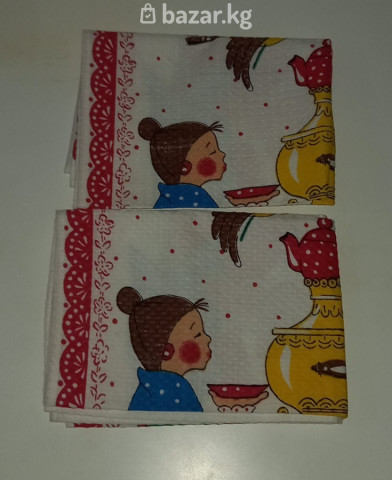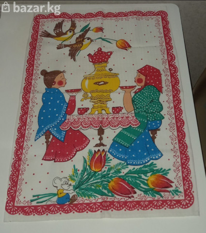Комплект "Домашний уют" Набор кухонных полотенец (всего 5шт.) с яркими принтами в народном стиле. Состояние: НОВОЕ, ЦЕЛОЕ. Состав и материал: - Плотный хлопок (вафельное полотенечное полотно), хорошо впитывает влагу и быстро сохнет. - Край обработан, выдерживает частые стирки. Дизайны: 1) Полотенце с крупным цветочным букетом на кремовом фоне, красная кайма с горошком, комплект 3 шт. 2) Полотенце с сюжетом русского чаепития у самовара: две девушки за столом, птицы и весенние тюльпаны, декоративная кружевная рамка, комплект 2 шт. Размер каждого полотенца примерно формата среднее кухонное (ориентировочно 40–50 см по стороне; см. фото для масштаба). Особенности: - Яркая стойкая печать, классические мотивы, которые украсят кухню в стиле ретро/русский прованс. - Подходят для вытирания посуды, рук, сервировки стола, декора. - Мягкие на ощупь, не линяют и не оставляют ворс. В комплекте несколько полотенец каждого рисунка (см. фото с аккуратно сложенными экземплярами). 👍 Для покупки звонить прямо или писать на ватсап/whatsapp: 0500 077 967 ❗️ОПЛАТА ТОЛЬКО НАЛИЧНЫМИ! ТОЛЬКО САМОВЫВОЗ!