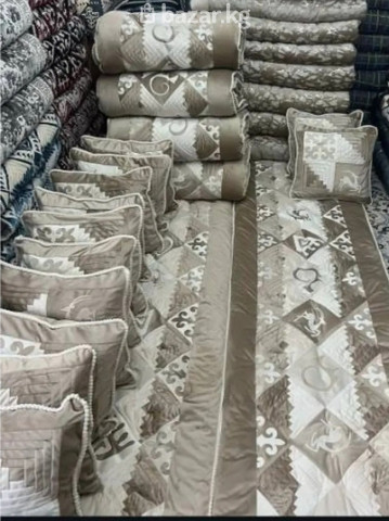 Срочно за дёшево продаем комплект курак жер тошок. Сшито индивидуально под заказ, материалы качественные, дизайн красивый, новый В комплекте: 6 подушек, 3 длинных корпочо, 2 плотных журкана. Доставку оплатим сами, звоните!