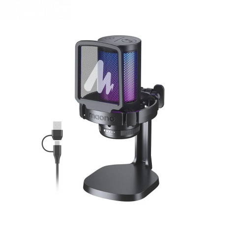 DGM20 это новый микрофон от Maono, предназначенный для гейминга и подкастинга. Единожды опробовав DGM20 в деле, вы будете приятно удивлены качеством записи, не смотря на низкую стоимость устройства. DGM20 включает в себя все функции настоящего геймерского микрофона и позволяет вам не отвлекаться на такие мелочи как поиск кнопки mute в вашей операионной системе, изменение уровня громкости микрофона, поиск способа услышать как ваш голос звучит в процессе записи. А благодаря встроенной в микрофон функции шумоподавления окружающих звуков ENC — в эфир не попадут звуки с улицы или топот соседей сверху. Подключите микрофон к компьютеру по USB, прямо на корпусе устройства отрегулируйте уровень шумоподавления, выберите один из девяти режимов RGB подсветки и будьте уверены — ваши собеседники по достоинству оценят то как вы звучите. Ключевые особенности: — кардиоидная направленность микрофона — кнопка уровня шумоподавления ENC на корпусе микрофона — настольная подставка и поп фильтр в комплекте — RBG подсветка: 9 сценариев, в том числе включение/отключение подсветки — возможность мониторинга: благодаря программному обеспечению и наличию в микрофоне разъема для наушников (3,5мм) вы можете осуществлять мониторинг записи без задержек — поддержка ПО Maono Link: данное ПО позволяет более гибко настраивать ваш микрофон благодаря встроенному эквалайзеру. Также Maono Link отвечает за настройку RGB подсветки микрофона — порт USB-C и разъем для установки: благодаря наличию порта usb-c и креплений диаметром 3/8” и 5/8” вы можете использовать свой DGM20 где угодно и с каким угодно устройством Технические харакеристики: Капсюль микрофона: конденсаторный Диаграмма направленности: кардиоидный Частотная характеристика: 80 Гц-10 кГц Чувствительность: -40±3дБ Частота дискретизации: 24-бит/48кГц Кабель: кабель USB A-C RGB: доступно Комплектация настольная подставка и поп фильтр