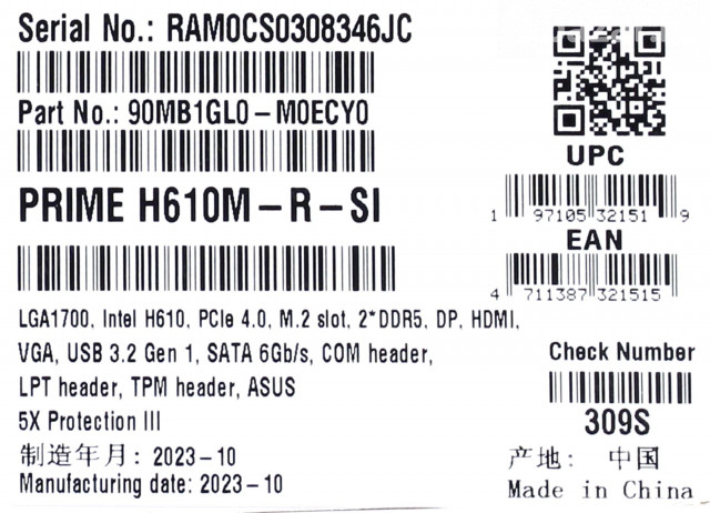 🖥 Материнская плата ASUS PRIME H610M-R-SI — новая 💰 Цена: 8100 сом 📌 Код товара: 498 Характеристики: Сокет: LGA1700 — поддержка процессоров Intel ® Core™ 14 -го и 13- го поколений, процессоров Intel ® Core™ 12 -го поколения, процессоров Pentium ® Gold и Celeron ® Чипсет: Intel H610 Память: 2×DDR5 (до 96GB, PC44800) 2 x DIMM, макс. 96 ГБ, DDR5 5600/5400/5200/5000/4800 Non-ECC, небуферизованная память* Слоты расширения: 1×PCI-E 4.0 x16, 1×PCI-E 3.0 x1 Аудио: 8-канальное Накопители: 4×SATA III + 1×M.2 Порты USB: 4×USB 3.0 + 6×USB 2.0 Видео: D-Sub, HDMI, DisplayPort Форм-фактор: mATX Состояние: новая, в упаковке Почему стоит взять у нас: ✅ В наличии большой выбор материнских плат, SSD, HDD, блоков питания, памяти, корпусов, видеокарт (новые и Б/У). ✅ Профессиональная консультация и помощь в подборе совместимых комплектующих. ✅ Гарантия качества. 🚚 Доставка: По Бишкеку — 150–300 сом В регионы — отправка любой транспортной компанией 📲 Для быстрого заказа: +996 550 917 124 +996 700 474 124 🌐 www.kaufmannservices.pro 🕒 Работаем с 10:00 до 22:00, без выходных.