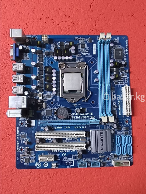 Материнская плата Socket LGA1156 GIGABYTE GA-H55M-S2 (rev. 1.3) 2DDR3 MicroATX Мат. плата GIGABYTE GA-H55M-S2 rev1.3(RTL) LGA1156 <H55> PCI-E+Dsub+GbLAN SATA MicroATX 2DDR3 Socket LGA1156 ✔Intel H55 ✔1 слот 16x PCI-E ✔15-пиновый коннектор D-Sub ✔1 Гбит / с ✔MicroATX ✔2x DDR3 Процессор Intel Core i3 540 Процессор CPU Intel Core i3-540 BOX 3.06 GHz/2core/SVGA HD Graphics/0.5+ 4Mb/73W/2.5 GT/s LGA1156 ✔3.06 ГГц ✔2-ядерный ✔Intel HD Graphics ✔256 КБ x2+4 Мб ✔73 Вт ✔2500 МГц ✔Socket LGA1156 ✔Clarkdale Цена Комплекта 2000Сом 3-дня на проверку Доставка по городу 150/300Сом а так же в регионы №338