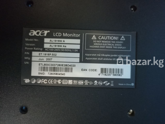 Монитор Acer AL1916 Диагональ 19" (48.3 см) Вход VGA Разрешение экрана 1440 x 900 Шнур VGA и Питания в комплекте ✅Цена 2300 Сом Без шнуров 2000 Сом ✅7-дней на проверку ✅Доставка по городу 150-300сом а так же в регионы ✅Для быстрого заказа ответа пишите Whatsapp ✅График работы 10.00 до 22.00 Без выходных №531