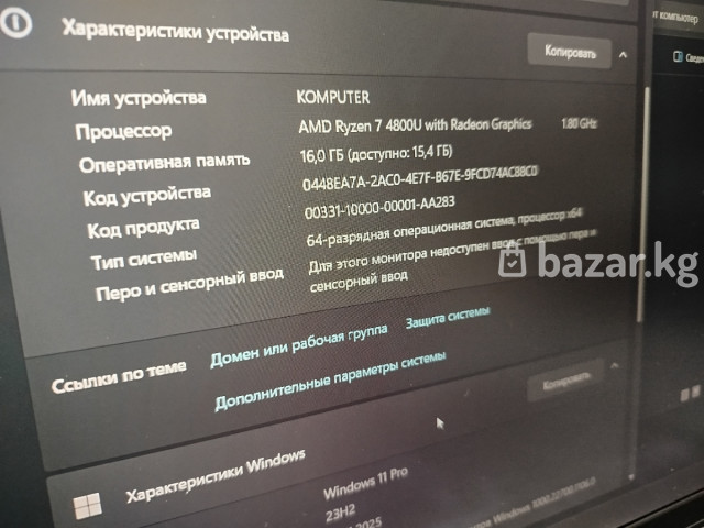 Мощный Почти Новый Ноутбук для любых универсальных задач. С большим запасом на долгие годы. 💻Фирма LENOVO IDEAPAD 5 Состояние б/у как новый, модель из новинок Привозной из США Стильный, легкий корпус, на половину металлический, очень крепкий Работает очень быстро! 🔦Есть подсветка клавиатуры 🎁При покупке в подарок: Мышка, сумка для ноутбука. 📍3 месяца гарантии ❌Обмена и рассрочки нет 🚗Бесплатная доставка по всему Кыргызстану ♦️Процессор Ryzen 7-4800 2.9 ghz с режимом Turboboost до 4.2 Ghz 8 ядер/16 потоков/cash 16mb ♦️Оперативная память 16 Gb ♦️Общая память SSD 512 Gb скоростной. ♦️Видеокарта Amd Radeon Rx vega 8 - 4Gb ♦️Размер экрана 15.6 Дюймов Full hd ips (1920x1080) тонкие рамки, Отличное качество ♦️Установлен свежий Windows 11+программы для офиса и работы. 💻Ноутбук подойдет для програмирования всех направлений| учебы| учителей| студентов| 3D работ| автокад| архикад| айтишников| работы| разных игр| фотошоп| фото обработка| таргет| бухгалтерия 1с| валдбериес| маркетплейсы| азон| графис| и подобное. ♦️Есть все необходимые подключения, камера, встроенный микрофон. Wi-fi, bluetooth, usb 2:0-3.1, hdmi. Встроенные динамики, card rider, Lan,sd-card.