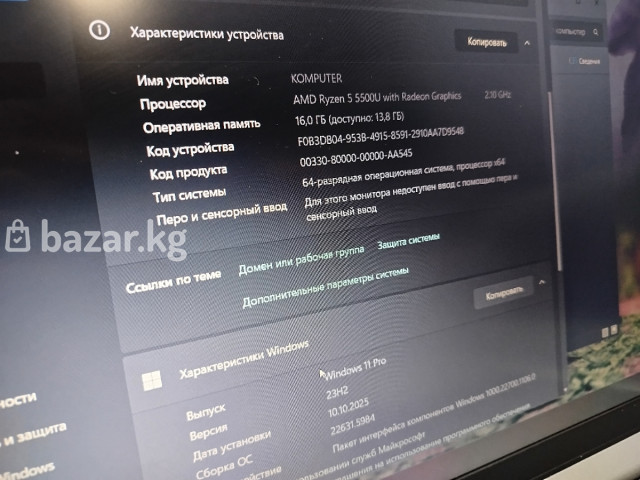 Мощный Почти Новый Ноутбук для любых универсальных задач. С большим запасом на долгие годы. Свежая модель из новинок 💻Фирма LENOVO IDEAPAD 5 Состояние б/у как новый, Привозной из США Стильный, легкий корпус Работает очень быстро! 🎁При покупке в подарок: Мышка, сумка, коврик для ноутбука. 📍3 месяца гарантии ❌Обмена и рассрочки нет 🚗Бесплатная доставка по всему Кыргызстану ♦️Процессор Ryzen 5-5500u 2.1 ghz с режимом Turboboost до 4.0 Ghz /6 ядер+12 потоков ♦️Оперативная память 16 Gb ♦️Общая память SSD 512 скоростной ♦️Видеокарта Amd Radeon Rx vega 8 - 4Gb ♦️Размер экрана 15.6 Дюймов Full hd (1920x1080) тонкие рамки, Отличное качество ♦️Установлен свежий Windows 11+программы для офиса и работы. 💻Ноутбук подойдет для програмирования всех направлений| учебы| учителей| студентов| 3D работ| автокад| архикад| айтишников| работы| разных игр| фотошоп| фото-видео обработка| таргет| бухгалтерия 1с| валдбериес| дизайн| маркетплейсы| азон| графис| и подобное. ♦️Есть все необходимые подключения, камера, встроенный микрофон. Wi-fi, bluetooth, usb 2:0-3.1, hdmi. Встроенные динамики, card rider