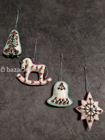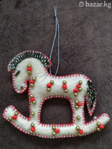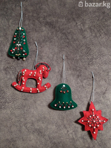Продается набор ёлочных игрушек ручной работы из фетра. В наборе 4 игрушки. Игрушки созданы из фетра белого, красного и зелёного цвета. Ёлочка и колокольчик с одной стороны белые, с другой - зелёные. Лошадка и звезда с одной стороны красные, с другой - белые. Вышивка выполнена вручную с использованием бисера, бусин, пайеток и ниток мулине. Игрушки упакованы в коробочку. Внутри есть праздничная открытка. Набор сшит в единственном экземпляре. Повторов не будет!
