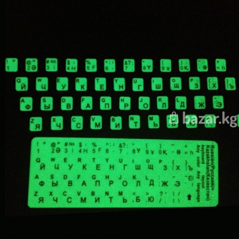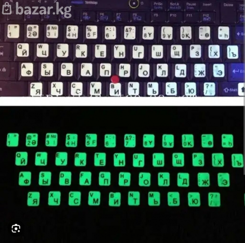 Наклейки для клавиятуры русско-английские прозрачные, чёрные и светящийся. Центр Бишкека.
