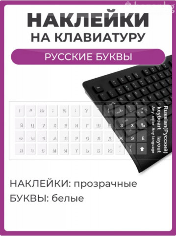 Наклейки на клавиатуру русские, прозрачные. Буквы белые или черные на выбор. Так же есть матовые черные английско-русские Цена 100 сом шт