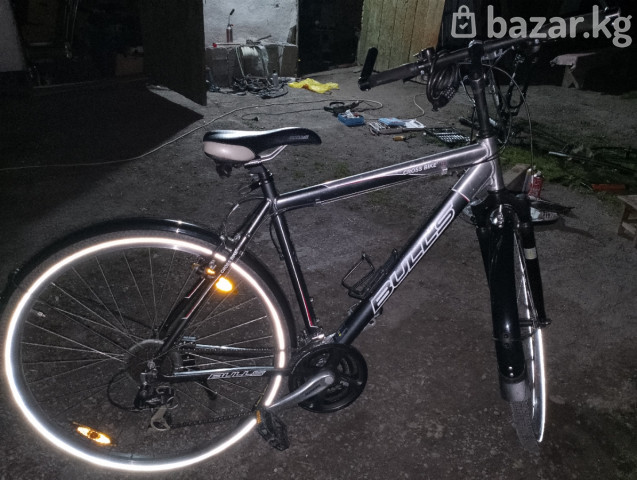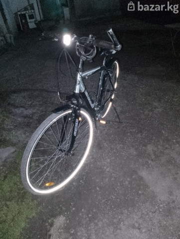 Алюминиевая рама, 28 ые колёса, отражающие полоски на шинах, передний амортизатор на вилках, велосипед находится в Карабалте.