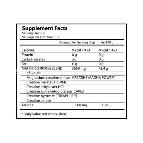 В составе Creatine Xplode Powder используется смесь 6 самых популярных и самых эффективных форм креатина, используемых в настоящее время во всем мире, а именно: креатин малат, этиловый эфир, альфа-КГ, пируват, цитрат и креатин хелат магния (креатин Magna Power). Использование этих форм креатина обеспечивает высокие достижения в спорте. Очень хорошо помогает в том числе обогащение продукта Creatine Xplode Powder таурином, который помогает эффективно тренироваться и способствует увеличению спортивных показателей, уменьшая при этом время восстановления после тренировки. Рекомендации по применению: 2 порции в день - перед завтраком и после тренировки. Рекомендации по приготовлению: Разбавьте 5 г порошка - 10 единицы измерения совка или 1 столовая ложка в 125 мл воды. Ингредиенты: креатин малат, креатин этиловый эфир, магний креатин хелат, креатин альфа-кетоглутарат, креатин пируват, креатин цитрат, загуститель, таурин, ароматизаторы, подсластители, сукралоза. Питательная ценность: 1 порция (5 г) 100 г порошка Калорийность 0 ккал 0 ккал Протеин 0 г 0 г Углеводы 0 г 0 г Жиры 0 г 0 г Креатиновые смеси 3669 мг 73,4 г из них Магний креатин хелат Креатин малат Креатин этиловый эфир Креатин альфа-кетоглутарат Креатин пируват Креатин цитрат Таурин 500 мг 10 г ВкусАпельсин / Тропический пунш
