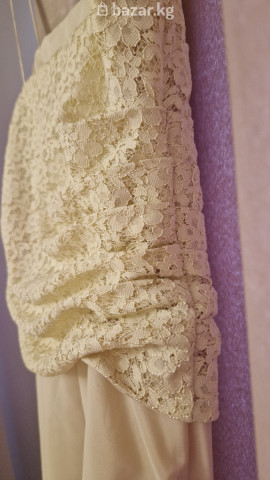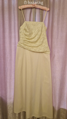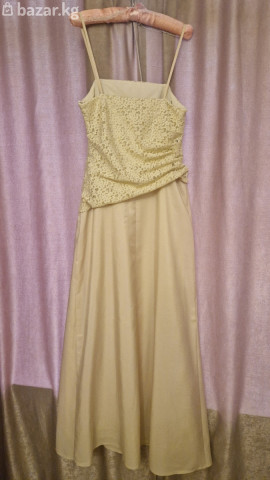 Платье на тонких бретелях, Длина от лямок до низа 150 см. Размер 42 кремового/ванильного оттенка. Состояние как новое - Лиф из ажурного кружева с цветочным рисунком, драпировка по переду. - Юбка А-силуэта из гладкой ткани, длина макси, - Полуприлегающий верх, аккуратный прямоугольный вырез. - Мягкая подкладка под кружевом, комфортная посадка. - Идеально для выпускного, свадьбы, торжеств, коктейлей. - Нейтральный пастельный цвет легко сочетается с аксессуарами в золоте, бежевых и пудровых тонах.
