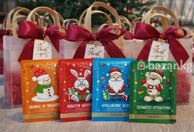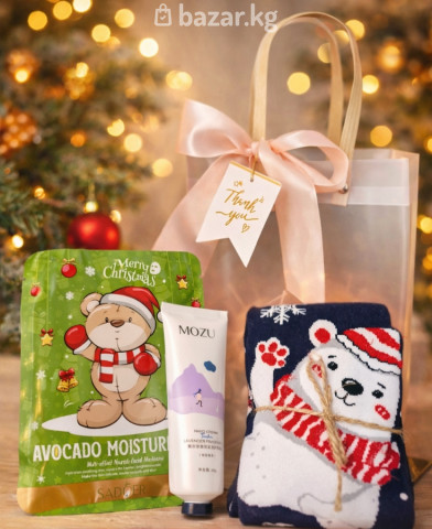 Подарочные наборы в новогоднем стиле Состав каждого набора: - Прозрачный матовый пакет с деревянными ручками, декоративным наполнителем и атласным бантом; бирка “Thank you”. - Носки с зимними принтами (олень/полярный мишка и др.) - Крем для рук - Тканевая увлажняющая маска для лица (иллюстрированные новогодние серии). Особенности: - Готовые к дарению: аккуратная упаковка, праздничное оформление. - Комбинация “уют + уход”: носки согревают, крем питает кожу рук, маска интенсивно увлажняет. - Разные варианты принтов носков, ароматов крема и масок (как на фото). Идея для небольшого сезонного презента коллегам, друзьям, учителям, на тайного Санту.