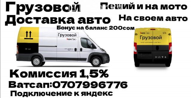 Яндекс таксопарк, Доставка машина менен,курьер мотоцикл,пешком,грузовой,экспресс улайбыз. Аз Комиссия 1.5% . Ватсапка:0707996776 жазыныздар тарифтерге улануу боюнча 5минутта улайбыз.Биринчи улангандарга баланска 200сом бонус💲