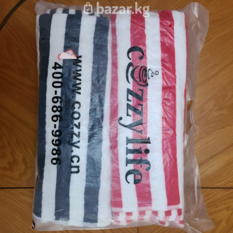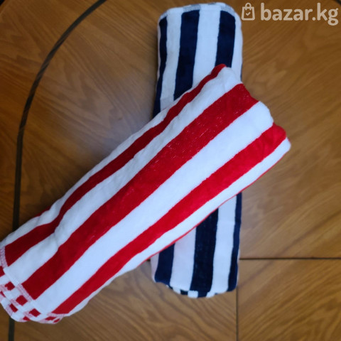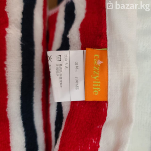 Полотенца Cozzylife, комплект из 2 штук. - Материал: 100% хлопок (ярлык производителя). - Ткань махровая, мягкая и хорошо впитывает влагу. - Дизайн: контрастные горизонтальные полосы. - Цвета в наборе: красно-белые и темно-сине-белые. - Края аккуратно окантованы. - Уход: машинная стирка при температуре до 30°C (по ярлыку), не отбеливать. Подходят для ванной, спортзала, бассейна и пляжа. Бренд: Cozzylife. Набор упакован.