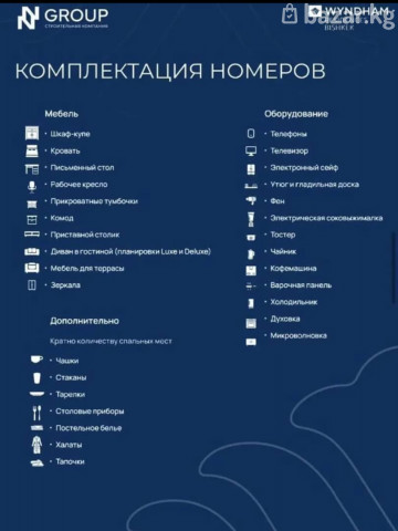 Продается 2к номер под ключ в Отеле "Wyndham Residence" Советская/Суеркулова Цена 145 740 $ - Открытие 2 квартал 2027г. - СК N Group - "Wyndham Residence". Элитный Отель Премиум класса! - Площадь аппартамента 41.64 м2 - на 8 этаже из 9 - Окна на Юг - Красная книга. ПДК (через ГРС). Документы в порядке - В сети 9300 отелей в 95 странах - Ежемесячный пассивный доход от сдачи в аренду через компанию - Высокие стандарты обслуживания и управления - УК заселяет гостей, убирает и обслуживает номера - Надежная инвестиция! Гарантированная Прибыль ежемесячно от 1000$+ - Отличный вариант для пассивного дохода! - Рассмотрим варианты бартера и рассрочки Звоните 0709374539, мега 0550374539 #купитькомерческоепомещениепсобишкек #Коммерческоепомещениепсобишкек #недвижимостьбишкек #коммерциябишкек #продажанедвижимости #продажагостинницывбишкеке #продажаотелябишкек #коммерческоепомещениевентребишкек #продажакоммерческогопомещения #купитькоммерческоепомещениебишкек #купитьномервотеле
