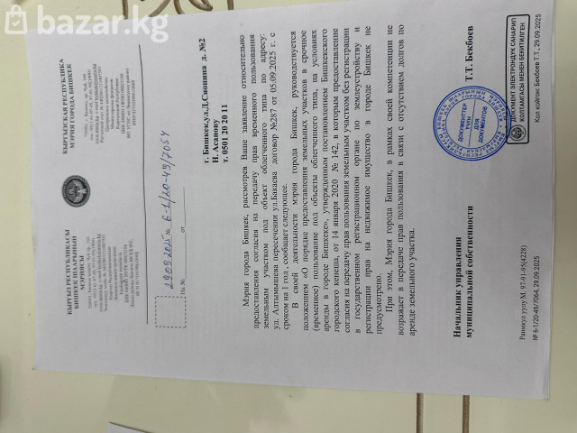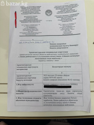 Готовый проект под продовольственный магазин | ТОП-локация Продается готовый проект с полным пакетом разрешительных документов под строительство (продовольственного ) магазина 50 м² + 8 м² навес. Также сдается в аренду по 25$ /м2 и депозит. Локация: г. Бишкек, ул. Алтымышева — напротив школы-лицея №74 — первая линия, высокий пешеходный трафик — рядом действующие магазины, кафе, остановки — плотная жилая застройка Площадь объекта: 50 м² + 8 м² навес Земля: муниципальная (оформлено право пользования, возможна передача прав с согласия мэрии). Цена 8 000$. (ранее было 9200$) Тел 0705 128899 АН