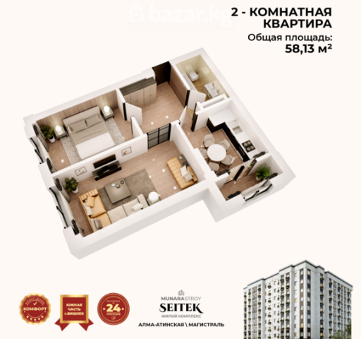 Продаю! 2-комнатная квартира с видом на город в экологичном районе Кок-Жар Всего 78 500 $ | ТОРГ на месте ЖД «Сейтек» от надежного застройщика MUNARA Полноценная 2-комнатная — удобная планировка, а не студия Экологически чистый район — горы и Ботанический сад рядом Черновая отделка (ПСО) — сделайте ремонт полностью под себя Цена: 78500$ Звоните: +996 550 906 696 Тумара Характеристики квартиры: Общая площадь: 58,13 м² Этаж: 9 из 9— никакого шума сверху и панорамный вид на город Состояние: ПСО (черновая отделка) Коммуникации: центральные Отопление: газовое О жилом комплексе: Подземный автопаркинг на 21 место Детская площадка Закрытая территория Озеленение Локация: Кок-Жар — один из самых чистых и востребованных районов города Свежий воздух, тишина и удобный выезд в центр Цена: 78 500 $ торг при осмотре реальным покупателям 📞 Звоните прямо сейчас: +996 550 906 696 — Тумара