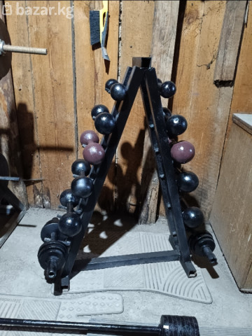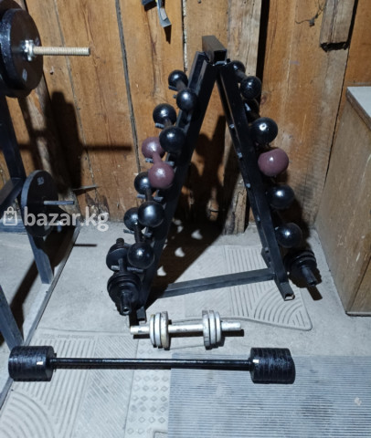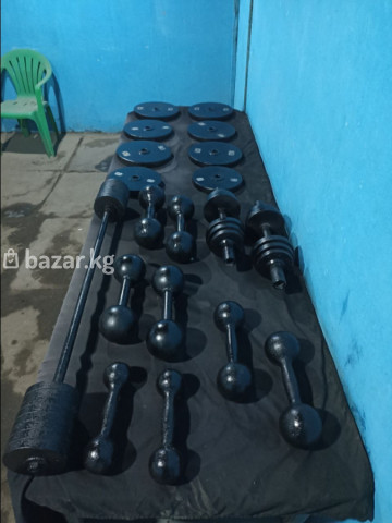 Стойка для груши Турник лесенка брусья: 11000сом Стойка для жима лёжа: 5000сом Скамья универсальная: 4000 Груша: 1500сом Гриф прямой большой: 4500сом Гриф маленький кривой: 3500сом Штанга для рук прямая 22кг: 3000сом. Полка стойка для гантелей:2000сом Блины Металл СССР. 👍 1кг 200сом общий вес 78кг ×200=15600сом . Не Китай не Узбекистан. Гантели: 12кг 3шт 6000сом 10кг пара 4000сом 8кг 3шт 4000сом 6кг 1шт 1500 сом 5кг пара 3000сом 2кг пара 2000 сом. Цена за весь Арсенал 70600 сом . Можете сами посчитать. ЕСЛИ ВСЕ СРАЗУ ЗАБЕРЁТЕ СДЕЛАЮ ХОРОШУЮ СКИДКУ И ОФОРМЛЮ ДОСТАВКУ.