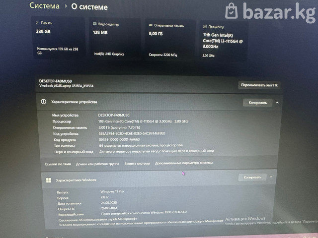 Продам ноутбук ASUS VivoBook X515EA. В хорошем состоянии, работает стабильно, без проблем. Характеристики: Процессор: Intel Core i3-1115G4 (11 поколение) Оперативная память: 8 ГБ Накопитель: 256 ГБ SSD Видеокарта: Intel UHD Graphics Экран: 15.6 дюйма Система: Windows 11 Pro Подходит для учёбы, работы, интернета и просмотра видео. Быстрый за счёт SSD, не тормозит. В комплекте ноутбук и зарядное устройство и сама коробка Вотсап 0706655996 только сообщения